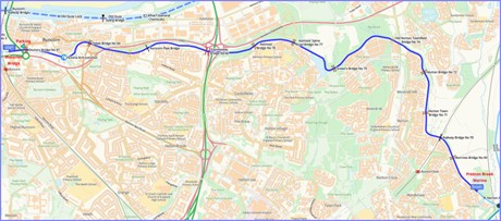 For Waterloo Bridge head west along the M56 and come off at Junction 12, heading towards Runcorn. At the roundabout take the 2nd exit and travel for 4.8 miles before turning left onto Leiria Way. After 0.3 mile turn left onto High Street. A free car park is located off this road on the right just before the road bridge. The canal and its pathway are adjacent. East (left as you approach on foot) leads to Preston Brook.