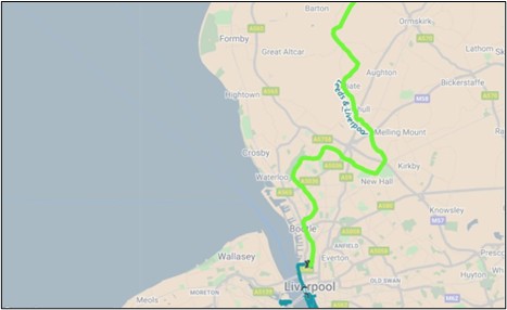 All road bridges from Liverpool Eldonian Bridge (start of navigation) to Bridge 25 at Halsall.
